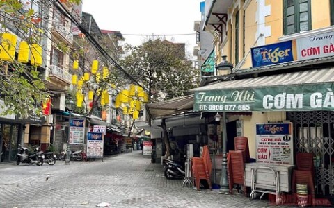 Khu phố ẩm thực Tống Duy Tân, các cửa hàng kinh doanh đều đóng cửa thực hiện nghiêm lệnh cấm.