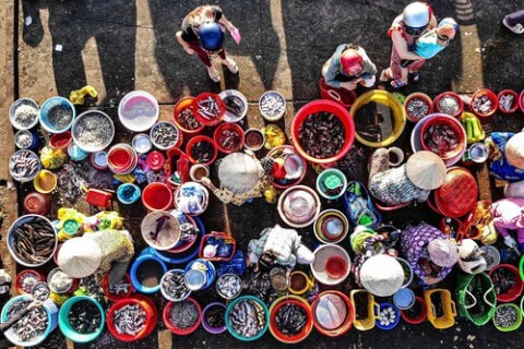 Ảnh chụp người bán cá tại chợ Vị Thanh, tỉnh Hậu Giang trong năm 2023. Việt Nam đạt mức tăng trưởng kinh tế 8,5% trong năm 2022 và thu hút 22,4 tỷ USD vốn cam kết đầu tư trực tiếp nước ngoài. AFP