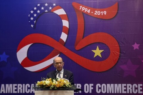 Hôm thượng tuần tháng 11/2019, ông Wilbur Ross đã nhắc nhở Việt Nam rằng rủi ro cho Việt Nam là có thật nếu Việt Nam bán hàng của Tầu vào Mỹ. AFP