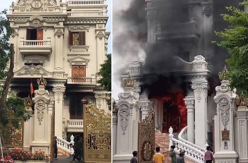 Biệt thự cháy ở Thành phố Cẩm Phả, tỉnh Quảng Ninh hôm 12/4/2022 - Dân Việt/Sức Khỏe và Đời Sống/ RFA edit