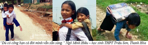 Trường hợp mới nhất, vừa được báo Lao Động (số ra ngày 4 tháng 9 năm 2020) chạy tin trên trang nhất : "Đôi bạn cõng nhau đi học suốt 10 năm được Chủ tịch tặng bằng khen"