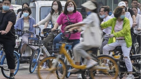 Xe đạp xe máy trong giờ cao điểm chờ đèn xanh tại một nút giao thông trong khu Thương mại, Bắc Kinh, Trung Quốc, ngày 13/09/2022. AP - Andy Wong