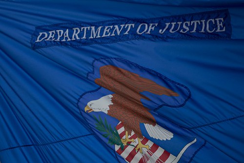Hình minh họa. Cờ của Bộ Tư pháp Mỹ ở Washington DC. AFP