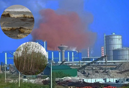 Liên tiếp nhiều tháng qua, người dân huyện Bình Sơn phát hiện quanh nhà máy thép Hòa Phát môi trường ô nhiễm nặng khi nước biển chuyển màu, cây chết và khói hồng bất thường xuất hiện - Courtesy of Tiền Phong -RFA edited