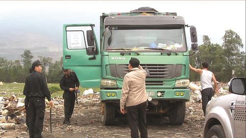 Công an tỉnh Hà Tĩnh bắt quả tang xe tải BS: 98C-020.20 đổ trộm rác thải từ Khu công nghiệp Formosa ra môi trường - Ảnh : Nguyên Dũng