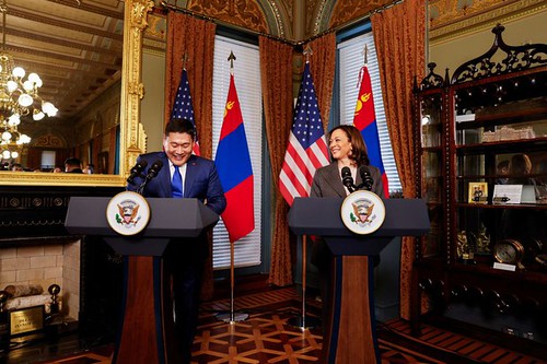 Phó Tổng thống Hoa Kỳ Kamala Harris gặp Thủ tướng Mông Cổ Oyun-Erdene Luvsannamsrai tại Nhà Trắng, ngày 2 tháng 8, 2023, khi hai nước công bố nâng cấp quan hệ "Đối tác chiến lược". Reuters