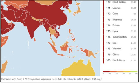 Việt Nam được xếp hạng thứ 178/180 quốc gia về tự do báo chí.