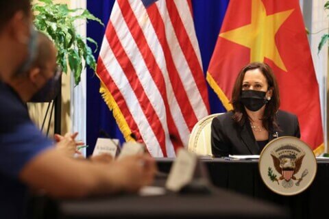 Phó Tổng thống Mỹ Kamala Harris gặp các đại diện tổ chức xã hội dân sự ở Hà Nội hôm 26/8/2021 - AFP