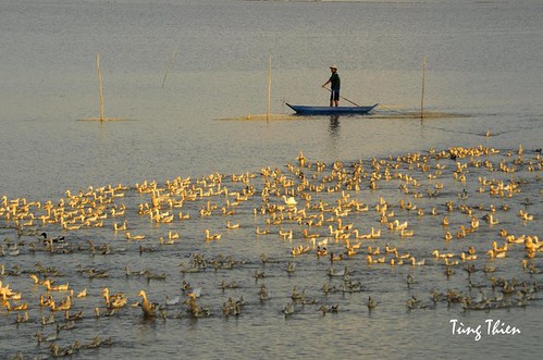 Một người nuôi vịt chạy đồng ở Đồng bằng sông Cửu Long. Courtesy of Tùng Thien