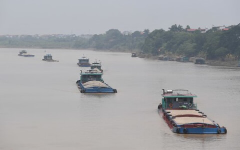 Thuyền chở hàng trên sông Hồng ở Hà Nội - AFP