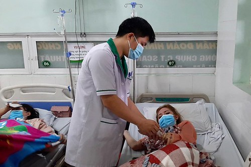 Bác sĩ khám bệnh cho một nữ bệnh nhân ở Bện viện Đa khoa An Phú ở Bình Dương hôm 7/9/2022 (minh họa) - AFP