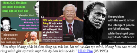 Mức độ tự huyễn của những lời phát ngôn dẫn thượng khiến tôi nhớ đến lời than phiền, nghe được từ hồi cuối thế kỷ trước, của ông Hà Sỹ Phu : "Đảng cộng sản Việt Nam như người đi đường không biết dùng bản đồ. Thỉnh thoảng lại sa xuống hố. Lóp ngóp bò lên được thì hô vang thắng lợi. Cứ thế, Ðảng ta đi từ thắng lợi này đến thắng lợi khác".