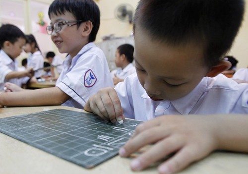 Một phụ huynh giấu tên vì lý do an toàn có con vào lớp một nói với RFA :