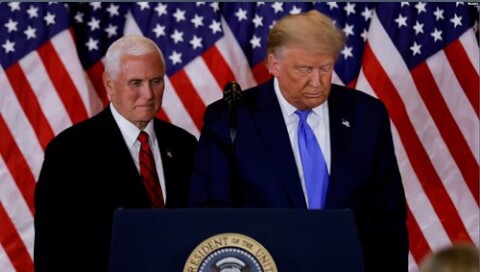 Tổng thống Hoa Kỳ Donald Trump và Phó Tổng thống Mike Pence đưa ra nhận xét về kết quả ban đầu của cuộc bầu cử tổng thống Hoa Kỳ năm 2020 tại Nhà Trắng ở Washington, Hoa Kỳ, ngày 4 tháng 11 năm 2020. Reuters / Carlos Barria