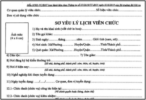 Ảnh chụp một phần mẫu Sơ yếu lý lịch