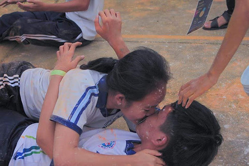 Cảnh các học sinh trường Trung học phổ thông Thực hành sư phạm (thuộc Đại học Cần Thơ) trong một trò chơi tập thể ngoài trời mang tên "chuyền thẻ qua mặt" (Người Lao Động, 26/08/2018).