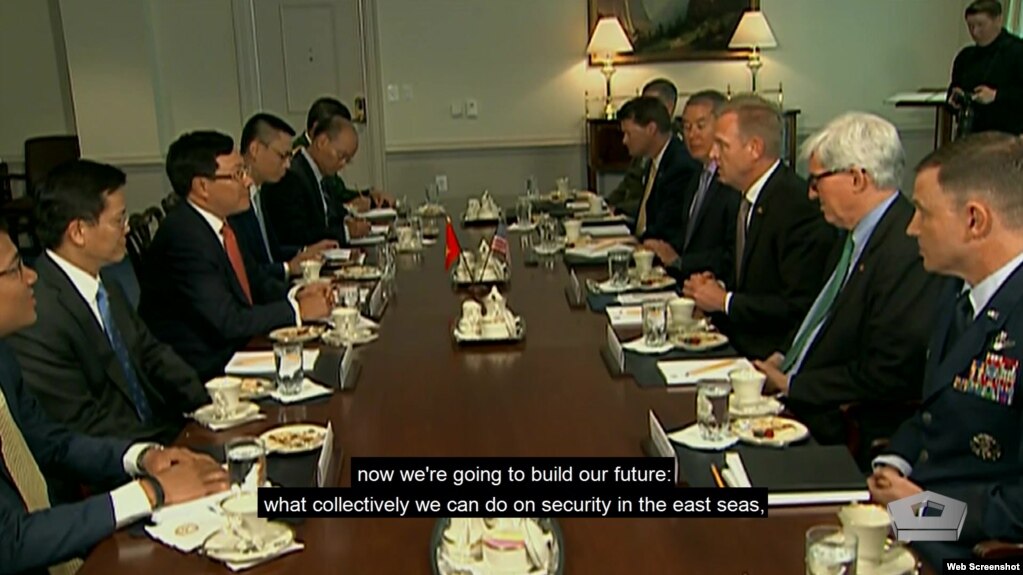 Hôm 23/5, Phó Thủ tướng kiêm Ngoại trưởng Việt Nam Phạm Bình Minh đã hội kiến với quyền Bộ trưởng Quốc phòng Hoa Kỳ Patrick Shanahan tại Ngũ Giác Đài, theo tin từ Bộ Quốc phòng Hoa Kỳ.