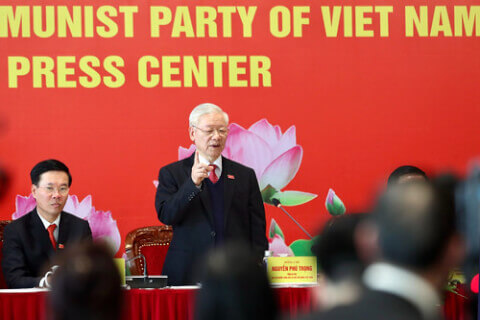 Tại cuộc họp báo, sau phiên bế mạc Đại hội Đảng XIII, vào sáng ngày 1/2, ông Nguyễn Phú Trọng cảm ơn báo chí chức mừng ông tái đắc cử chức vụ Tổng bí thư.