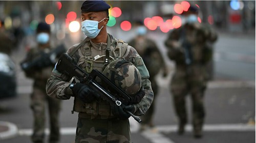 Quân đôi Pháp tuần tra tại Marseille, miền Nam nước Pháp, ngày 03/11/2020, trong khuôn khổ chiến dịch Sentinelle nhằm bảo vệ những "điểm" nhạy cảm chống lại các mưu toan khủng bố. AFP/Christophe Simon