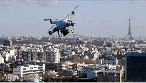 Pháp sử dụng drone giám sát an ninh tại nhiều khu vực trên toàn lãnh thổ. Ảnh thiết bị bay thực hiện phi vụ trên bầu trời Paris. AFP Photo / Dominique Faget