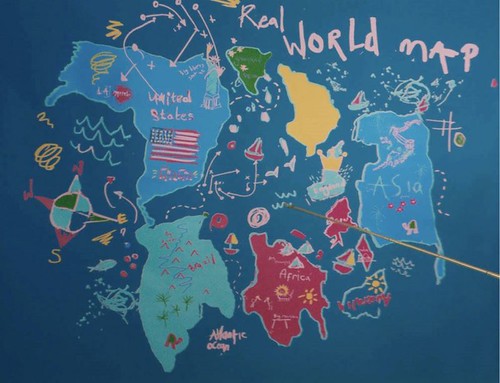 "Bản đồ này mang tính giả tưởng, theo hình thức hoạt hình. Lục địa Châu Âu ở đâu ? New Zealand ở đâu ? Những con tàu có cánh buồm đại diện gì ? Tại sao có vương miện của một anh hề nằm ngay trên Iceland ? Dòng hashtag trôi nổi trên đại dương là gì ? Đây có phải là cây thông Giáng sinh không ? Tạo sao Châu Phi bị biến dạng và tại sao có mặt trời ở gần Tanzania ?"
