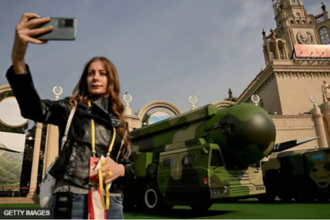 Tên lửa đạn đạo xuyên lục địa có thể mang đầu đạn hạt nhân DF-41 được trưng bày tại Bắc Kinh vào năm 2022