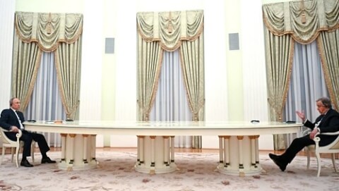 Tổng thống Nga Vladimir Putin gặp Tổng thư ký Liên hợp quốc António Guterres tại Điện Kremlin ở Moscow vào ngày 26/4/2022. Vladimir Astapkovich/Sputnik/ AFP