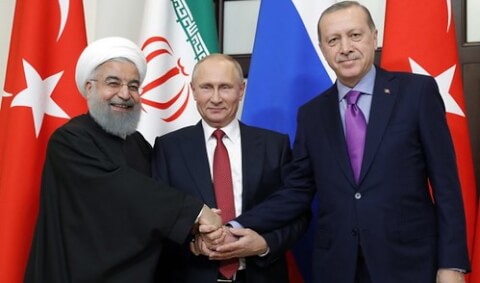 Rohani, Putin và Erdogan. 2018 / Sputnik /AFP / Mikhail Metzel