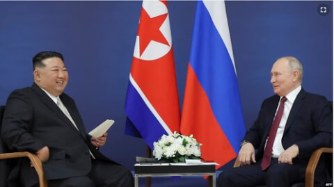 Cho nên, họ chỉ còn một chuyện để thể thảo luận, là vũ khí ! Từ khi xâm lăng Ukraine, Nga đã mua súng và đạn đại pháo của Bắc Hàn. Hàng trăm xưởng chế tạo, mỗi xưởng mười ngàn công nhân trên cả nước ; đang có sẵn 10.000 khẩu đại bác và mấy chục triệu viên đạn ; tất cả các nước trong các nước Bắc Đại Tây Dương (NATO) góp lại cũng không bằng, theo báoNew York Times. Họ làm súng đạn theo mẫu của Nga, cho nên quân Nga sử dụng dễ dàng, chỉ thiếu loại "vũ khí tinh khôn" tự động tìm đánh trúng mục tiêu. Bắc Hàn cũng xuất cảng súng đạn cho các chế độ độc tài ở Syria và Iran.