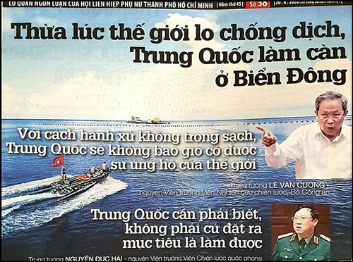 Hình ảnh các quan chức về hưu lên tiếng khi Trung Quốc gây hấn, đăng trên Báo Phụ Nữ hôm 20/4/2020 (phiên bản báo in) - Courtesy FB Đinh Kim Phúc