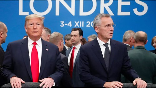 Tổng thống Mỹ Donald Trump và Tổng thư ký khối NATO, Jens Stoltenberg trong lần họp thượng đỉnh của khối liên minh quân sự tại Anh Quốc, ngày 04/12/2019. AP - Frank Augstein
