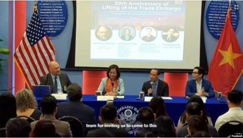 Đại sứ Mỹ tại Việt Nam Marc Knapper nhận định trong sự kiện được trang Facebook của Đại sứ quán tường thuật trực tiếp rằng việc Washington bãi bỏ cấm vận thương mại đối với Hà Nội 30 năm trước có ý nghĩa rất quan trọng.