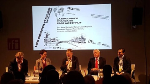 Buổi thảo luận về chủ đề "Ngoại giao Pháp trước cuộc xung đột", trong khuôn khổ chương trình Hội thảo Địa Chính trị, do Viện Quan hệ Quốc tế và Chiến lược tổ chức ở Nantes, Pháp, với sự cộng tác của đài RFI. © RFI tiếng Việt.