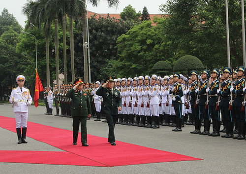 Đại tướng Ngô Xuân Lịch, Bộ trưởng Bộ Quốc phòng Việt Nam và Bộ trưởng quốc phòng Trung Quốc, Thượng tướng Ngụy Phượng Hòa tại Trụ sở Bộ Quốc phòng ở Hà Nội ngày 27/05/19. Courtesy : chinhphu.vn