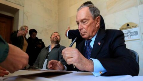 Cựu thị trưởng thành phố New York Michael Bloomberg điền vào phiếu ứng cử Tổng thống trong đảng Cộng hòa tại Tòa nhà Đại hội tiểu bang ở Little Rock, Arkansas. (Staton Breidenthal / Dân chủ Arkansas-Công báo qua AP)
