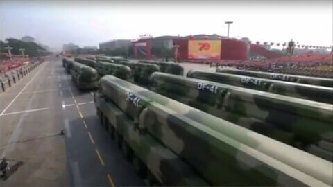 Tên lửa đạn đạo liên lục địa, có khả năng mang đầu đạn hạt nhân DF-41 của Trung Quốc trong một cuộc diễu binh ở Bắc Kinh năm 2019