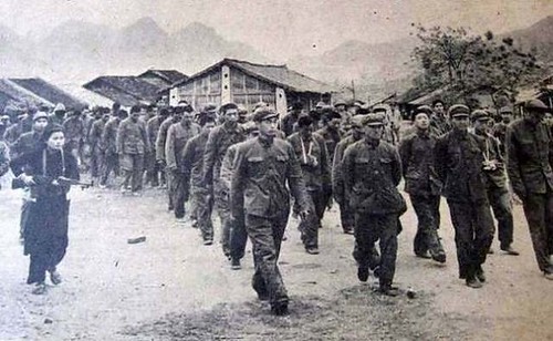 Nữ dân quân Cao Bằng dẫn giải tù binh Trung Quốc bị bắt