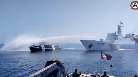 Tàu Cảnh sát biển Trung Quốc đụng độ với tàu tuần duyên Philippines bằng vũ khí đơn giản ở Biển Đông (Ảnh : Public Domain)