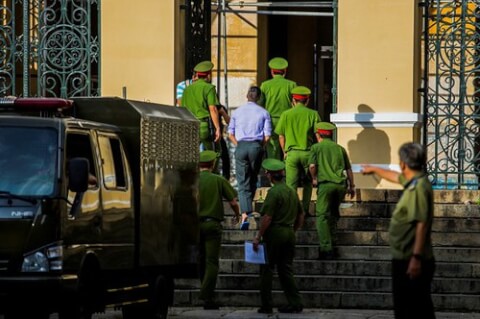 Cảnh dẫn giải một bị cáo ra tòa Thành phố Hồ Chí Minh - AFP
