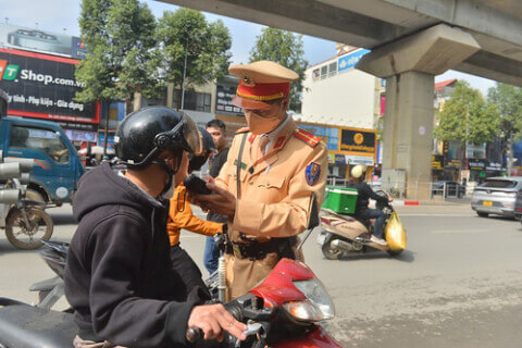 Công an Thành phố Hà Nội kiểm tra nồng độ cồn người tham gia giao thông. Ảnh : X.N.
