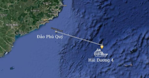 Vị trí của tàu Hải Dương 4 vào lúc 4g51 ngày 21/6/2020, tàu đang hiện diện cách đá Châu Viên khoảng hơn 6 hải lý về phía đông nam, cách đảo Phú Quý khoảng 255 hải lý về phía đông nam.