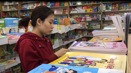 Quầy bán sách giáo khoa lớp 1. RFA Photo