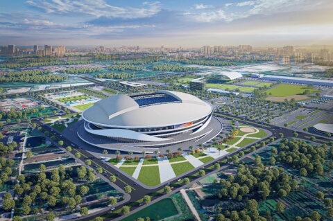 Theo thiết kế, sân vận động có sức chứa 60.000 chỗ ngồi, đáp ứng tiêu chuẩn quốc tế cho các giải đấu tầm cỡ ASIAD, Olympic và World Cup. Điểm nhấn của công trình là mái vòm đóng mở tự động lớn nhất thế giới, có thể vận hành chỉ trong 12–20 phút, giúp tổ chức linh hoạt các sự kiện thể thao và văn hóa trong mọi điều kiện thời tiết.