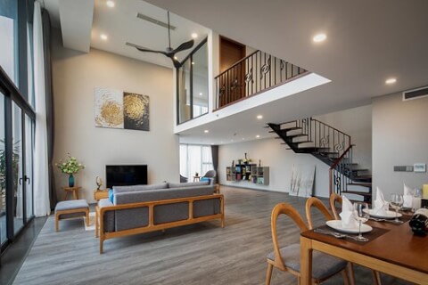 Căn hộduplex ở Tây Hồ rộng tổng cộng khoảng 23m2, sàn dưới khoảng hơn 15m2, phía trên khoảng 7m2, được trang bị đầy đủ. Ảnh minh họa