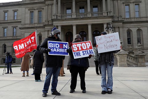 Những người ủng hộ Tổng thống Trump và Tổng thống tân cử Biden ở Michigan hôm 14/12/2020 - Reuters