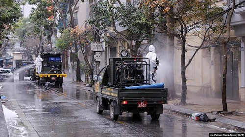 Chính quyền Hà Nội khử trùng đường phố sau khi bệnh nhân 17 được xác nhận dương tính với virus corona