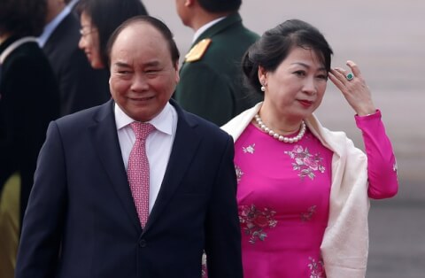 Thủ tướng Nguyễn Xuân Phúc và vợ là Trần Thị Nguyệt Thu đến New Delhi, Ấn Độ hôm 24/1/2018 - Reuters/Adnan Abidi