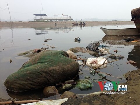 Đây chính là hình ảnh sông Hồng ngày hôm nay. Với rác thải tràn ngập, mặt nước đen ngòm và bốc mùi hôi tanh.