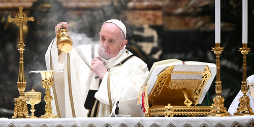 Tối 24/12, Giáo hoàng cử hành thánh lễ tại thánh đường Phê-rô trước cử tọa chưa đầy 200 người, hầu hết là nhân viên phục vụ trong Tòa Thánh, do mùa dịch Covid-19, thay vì trước hàng ngàn con chiên như thường lệ. Do lệnh giới nghiêm bắt đầu từ 10 giờ đêm, Vatican đã phải cử hành lễ từ 7 giờ 30 tối.