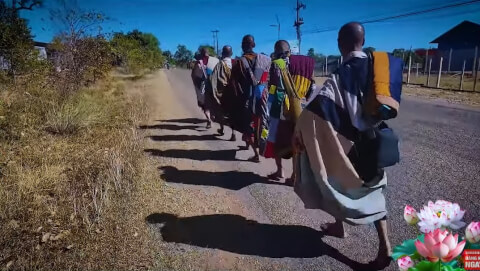 Nhà sư cầm cờ đi bộ ?